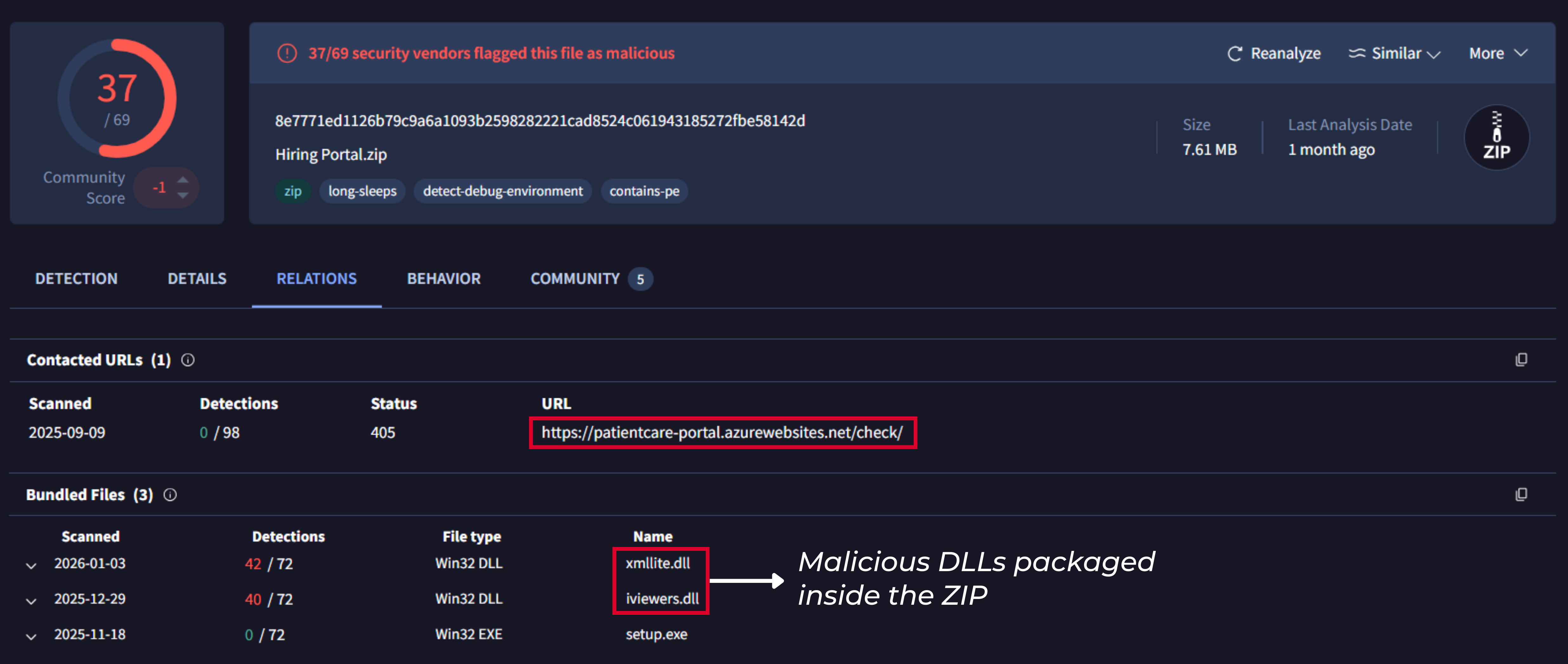 | Web Sites and Downloads | Be cautious with login pages and job portals. Avoid downloading files from unverified sources. Strengthen EDR and Web security products to detect malicious ZIPs and installers. |