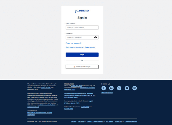 Given below an example fake website imitating Boeing Careers, which deliver malicious archive/ZIP files after user authentication: